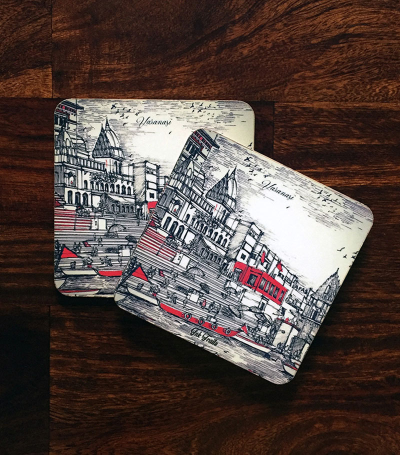 The set of 2 coasters are 3.5″ x 3.5″ and come with a cork board backing. It is laminated on top, therefore it is water resistant and can be wiped clean. They make great addition to ones décor and also very unique gifts!